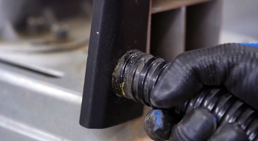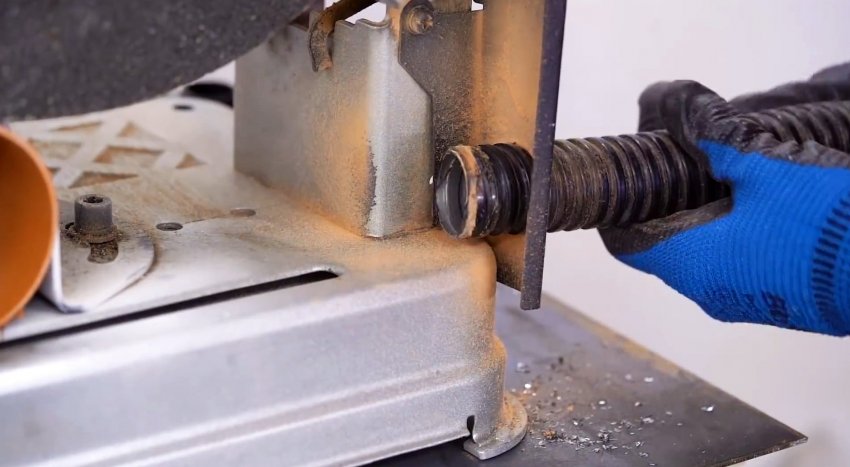 Если ваш станок не предусматривает подключение пылесос, тогда просто просверлите его защитный кожух. В полученное отверстие вставьте шланг, и включите пылесос. Так вся стружка и опилки будут сразу засасываться.