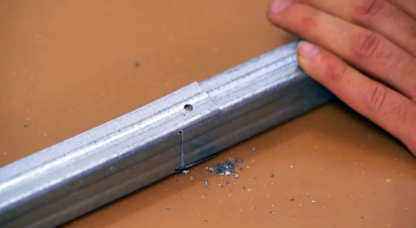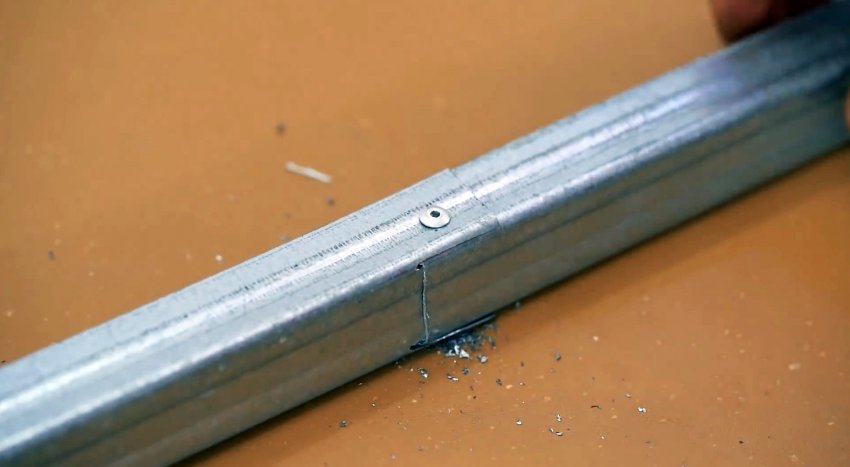 Чтобы соединить два профиля, с торца одного из них делаем пропилы по граням. Затем второй профиль отлично с ним стыкуется внахлест.