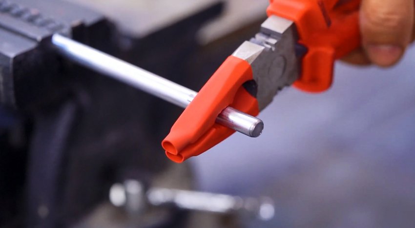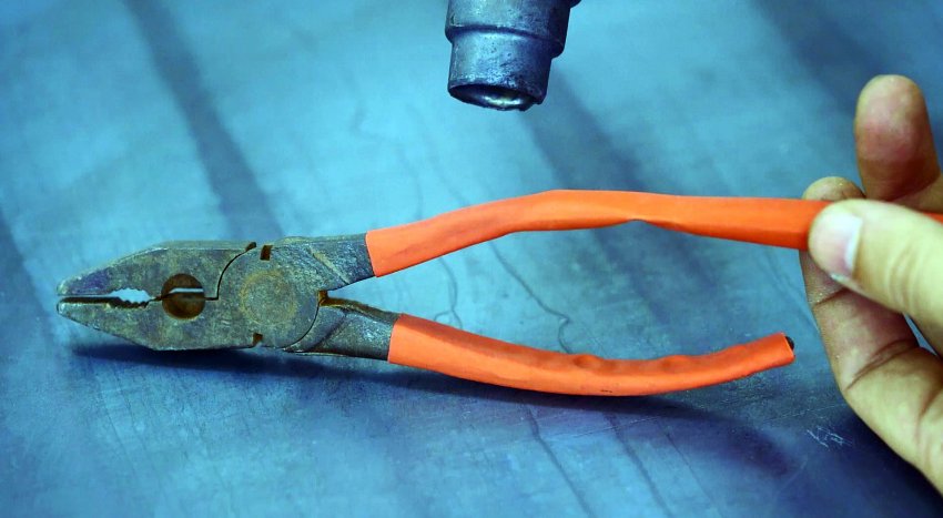 Если у ваших плоскогубцев нет ручек, наденьте вместо них термоусадку. Нагрейте ее, и она надежно обожмется.