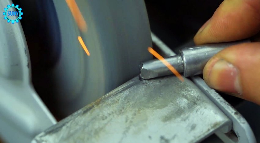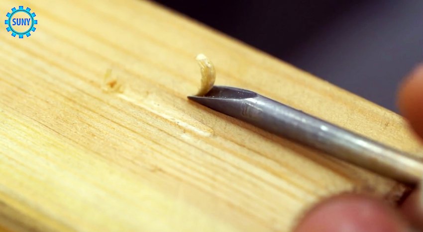 Гравером с маленькой фрезой или круглым надфилем выберете металл внутри, сформировав лезвие. После этого греем саморез докрасна, и охлаждаем в масле. После закалки, его можно вкрутить резьбой в рукоять. Все, резец готов к применению.