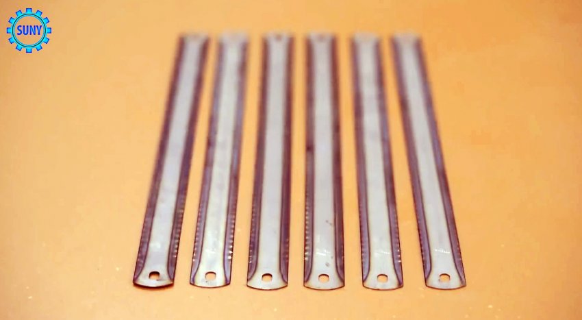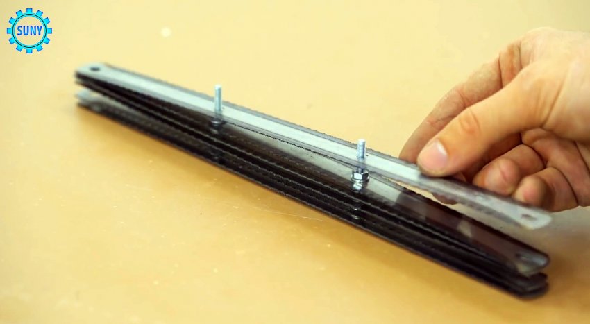 Возьмите 5 полотен для ножовки по металлу, сложите вместе и просверлите в двух местах ближе к центру.