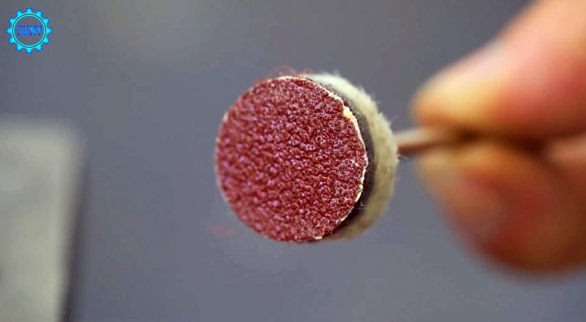 Таким образом получаем хвостовик для установки в гравер. Теперь остается просто приклеить на липучку наждачку.