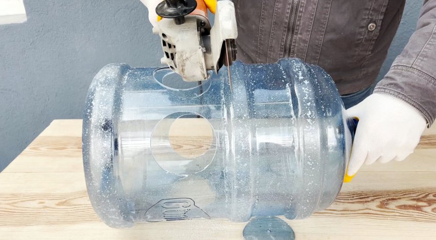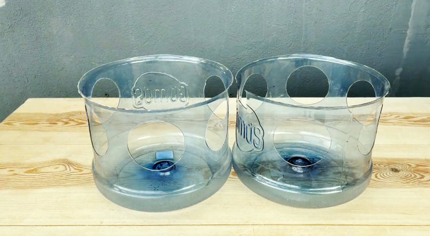 Отрежьте верхнюю часть емкостей при помощи болгарки. Наждачной бумагой удалите зазубрившиеся края.