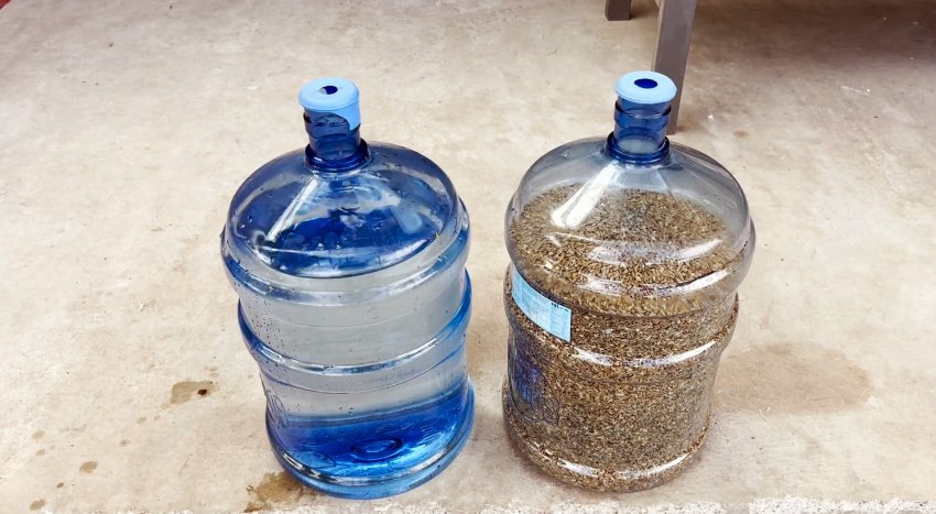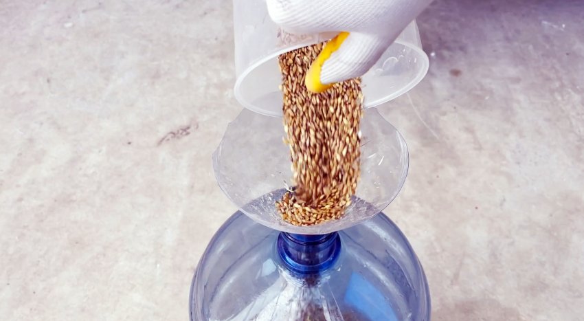 В первую емкость насыпьте зерно, во вторую – налейте воды и закройте их.