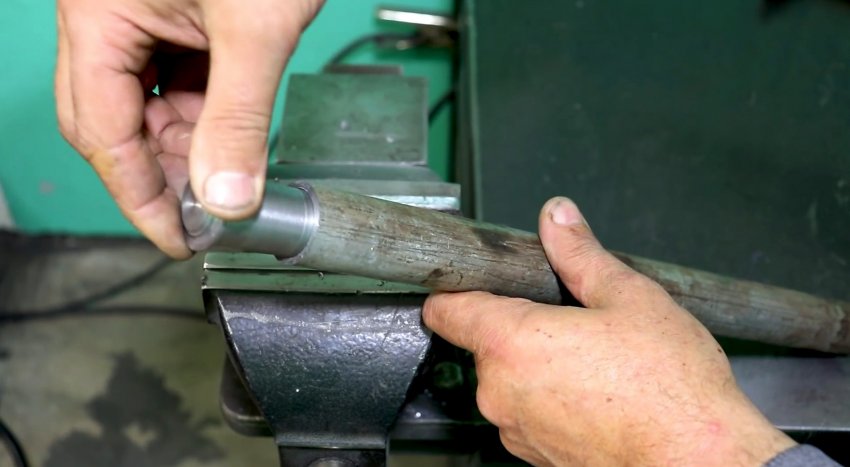 Проверяем вход цилиндра с буртиком внутрь трубы.