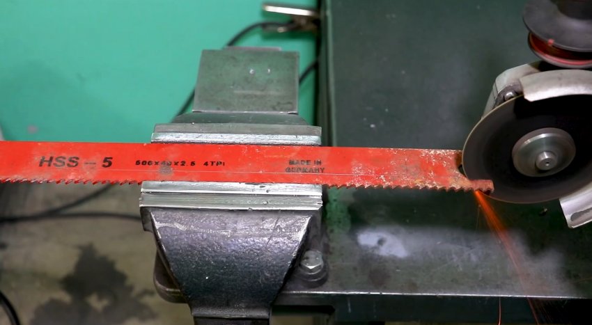 У пильного полотна удаляем зубья и отрезаем планку нужной ширины и длины. Зачищаем, скругляем кромки и проверяя легкость ее вращения в трубе.