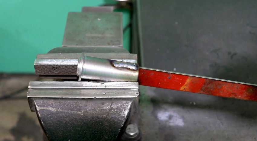 Вставляем планку в прорезь цилиндра и привариваем. Шлифуем сварные швы, не допуская их выхода за габариты узла.