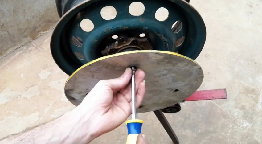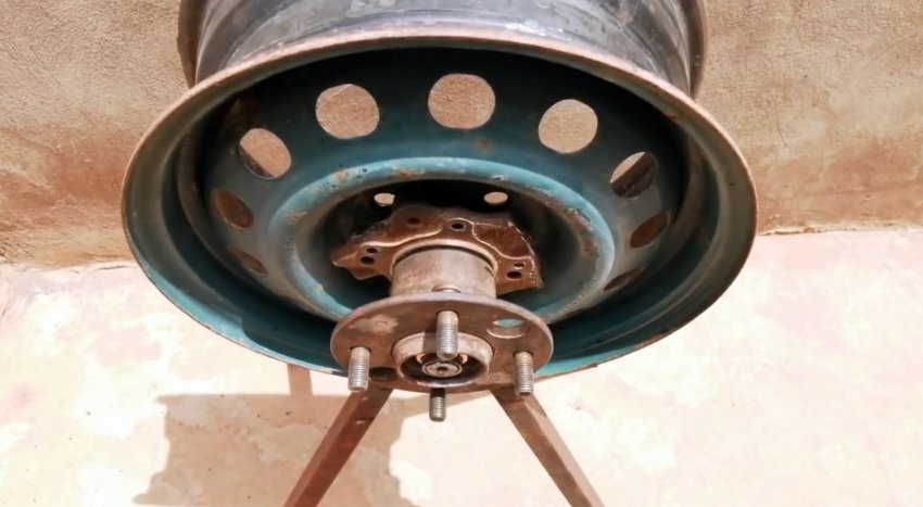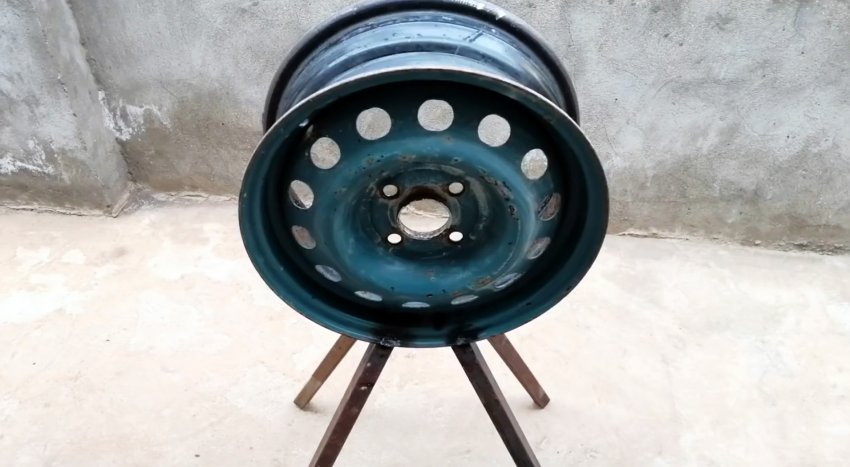 Для сборки станины станка потребуется колесный диск. К нему привариваются ножки из профильной трубы.