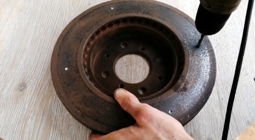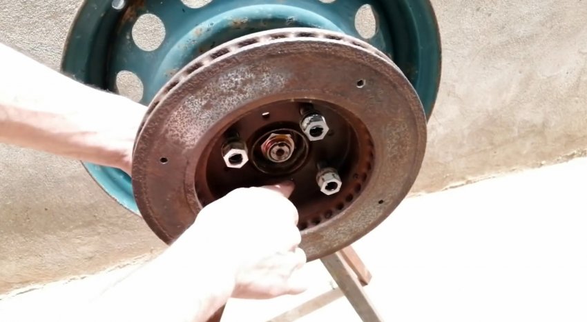 Далее прикручиваем к ней тормозной диск, на котором предварительно просверливаются отверстия по окружности.