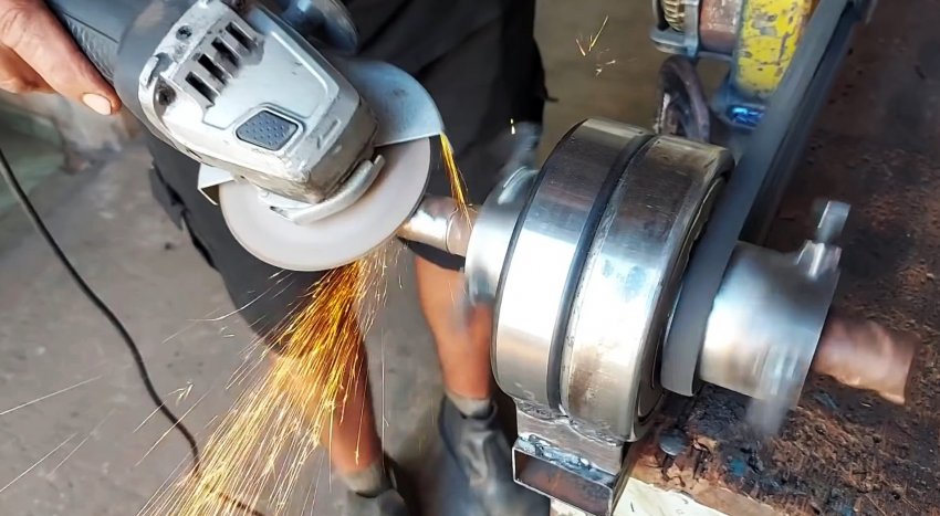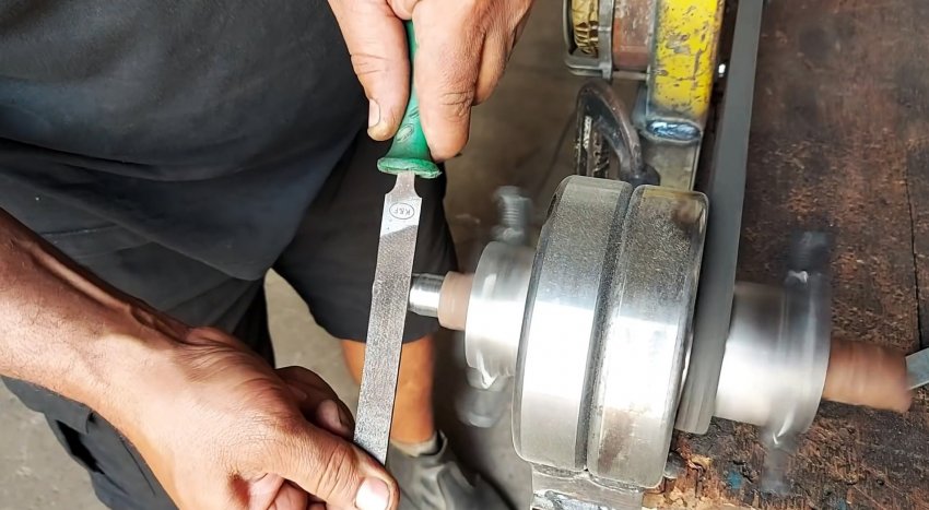 Стачивать лишний диаметр проще всего болгаркой. В конце вал доводится плоским напильником. Контроль диаметра выполняется штангенциркулем.