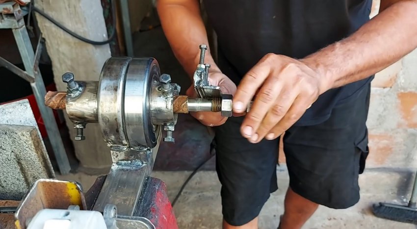 Обработать заготовку можно с помощью самодельного станка, который будет ее вращать. Как его сделать читайте тут - https://sdelaysam-svoimirukami.ru/8699-naiprostejshij-tokarnyj-stanok-dlja-metalloobrabotki-svoimi-rukami.html