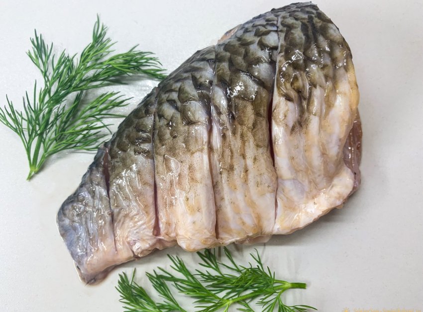 3. Для измельчения костей делаем по бокам тушки с обеих сторон глубокие насечки. Таким образом, карась хорошо прожарится.