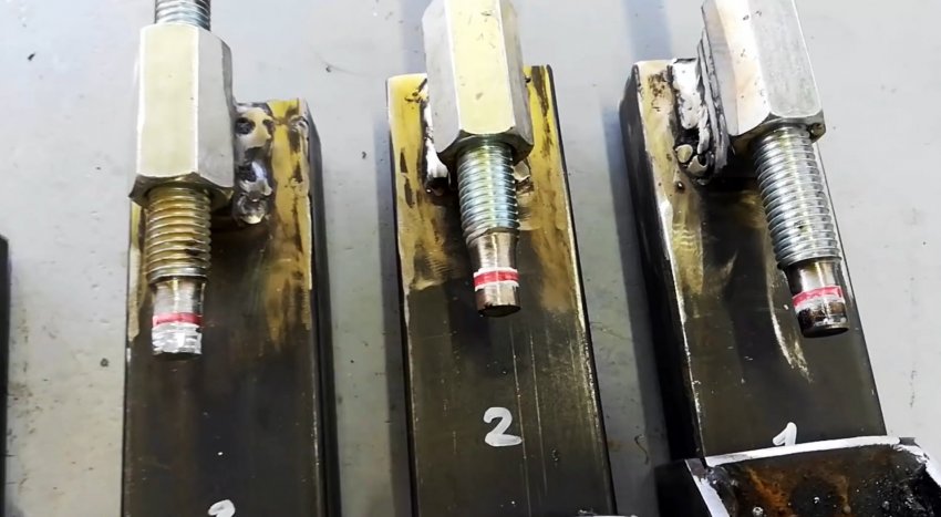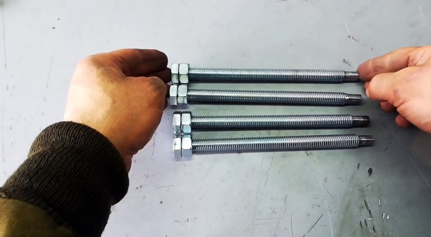 Накручиваем гайки до головок болтов и привариваем их.