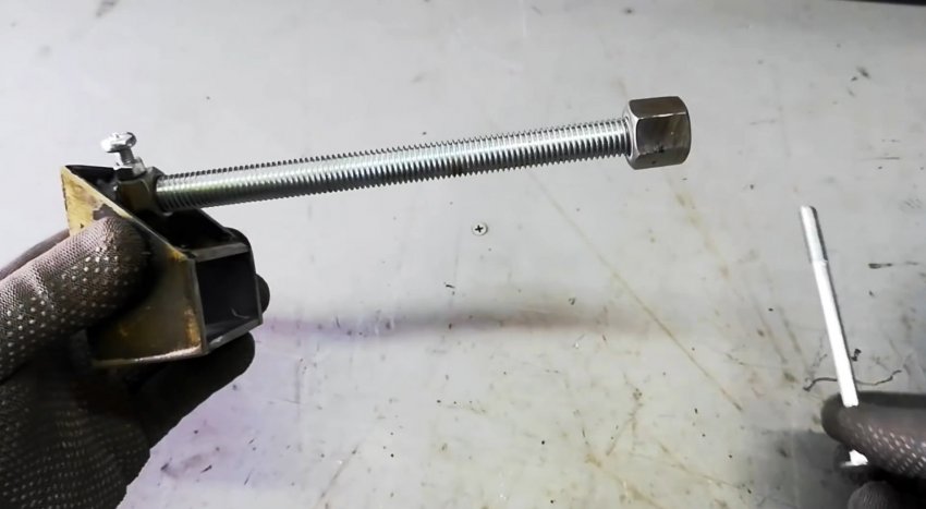 Разрезаем соединительную гайку на половинки. На концах длинных болтов с шестигранными головками вместо нескольких витков резьбы выполняем цилиндрическую поверхность.