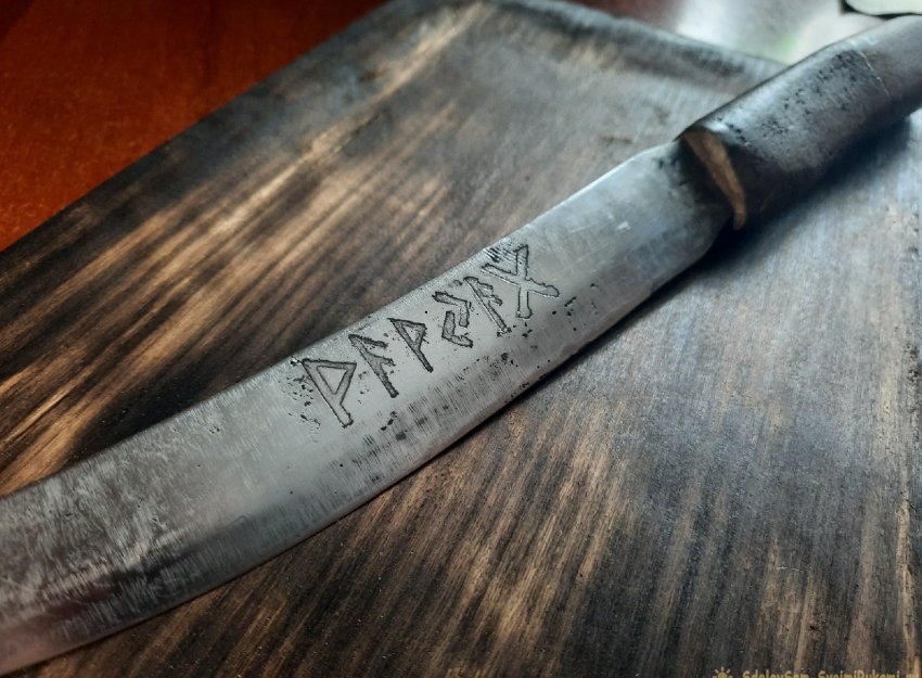 После лак удаляем с помощью горелки и ацетона и любуемся результатом. Хочу также отметить, что это кованый нож из напильника, то есть закаленная высокоуглеродистая сталь марки У10, твердость около 55 по шкале Роквелла. И при этом рисунок получился глубокий, рельеф очень меня порадовал.