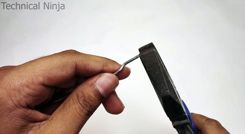Из проволоки выгибается тяга, чтобы соединить маховик на редукторе с поршнем. На ее края натягиваются кусочки трубочек, чтобы проволока не выпадала.