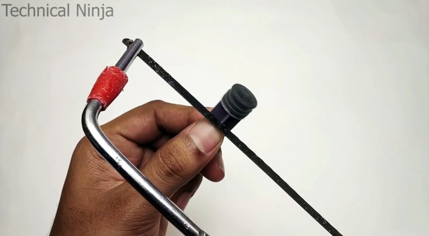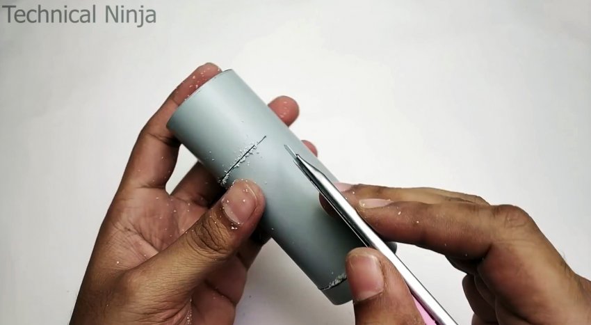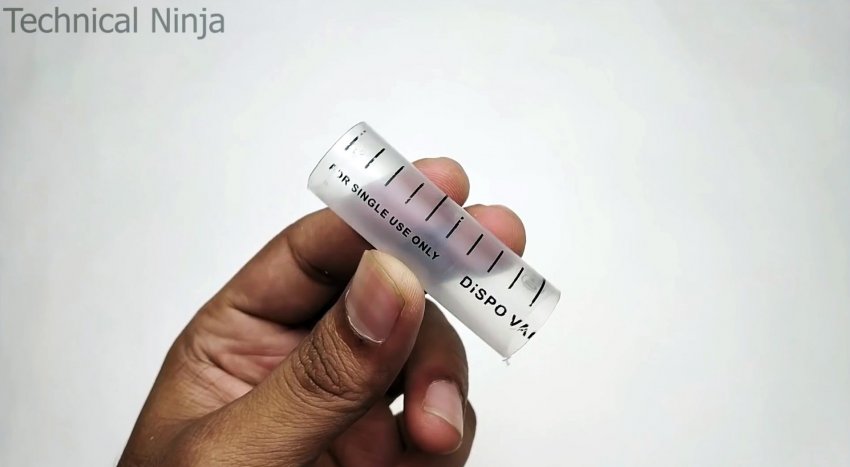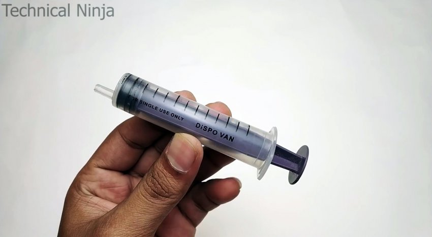 После этого нужно срезать центральную часть со шприца. Это будет гильза компрессора.