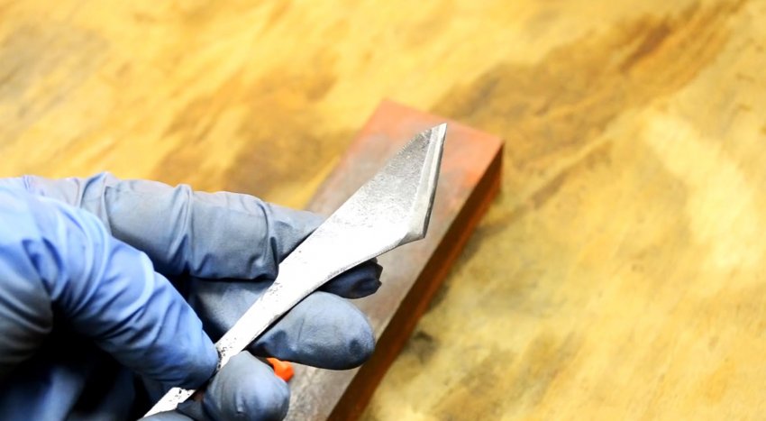 Затем нужно вывести спуск лезвия, и сделать одностороннюю заточку. Сам клинок должен быть очень гладким, что исключит повышенное трение при глубоких резах.