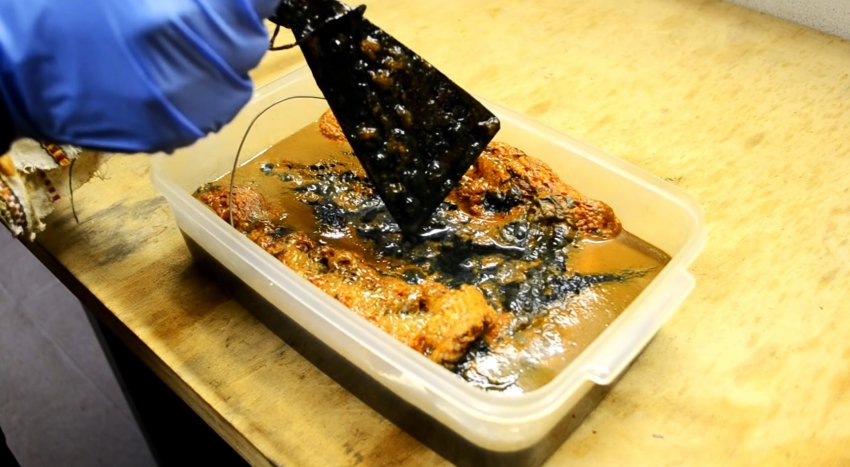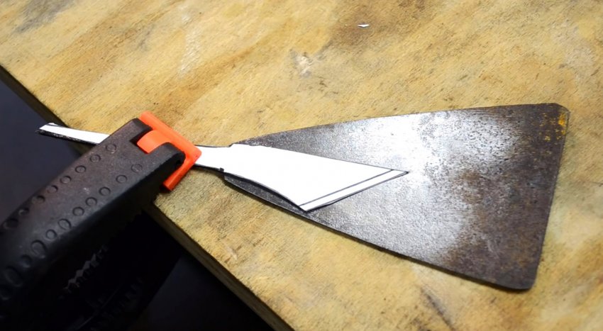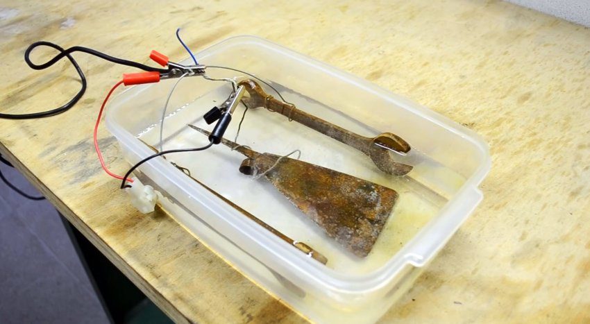 После этого нужно очистить шпатель от ржавчины любым доступным способом. К примеру электролизом (подробнее тут - https://sdelaysam-svoimirukami.ru/3725-vosstanovlenie-zarzhavevshih-poverhnostey.html).