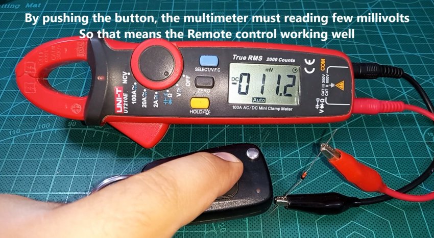 Но стоит нажать кнопку пульта ДУ, как показания прибора резко изменятся, что показывает исправность передатчика пульта.