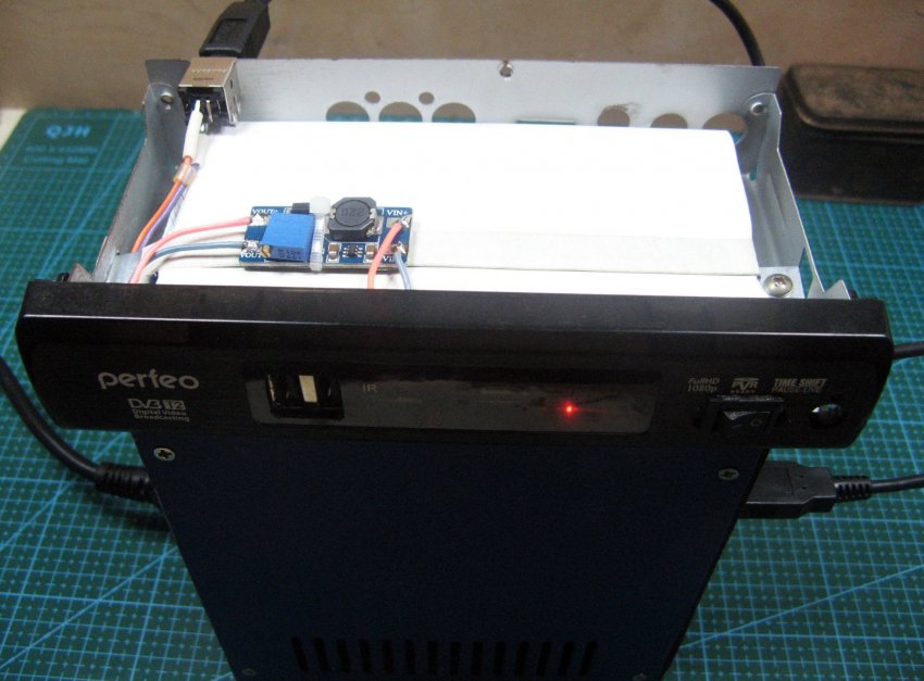 Ну и главное в нашем устройстве конечно же корпус. Я выбрал коробку от сгоревшего тюнера Т2. В нее все отлично поместится.