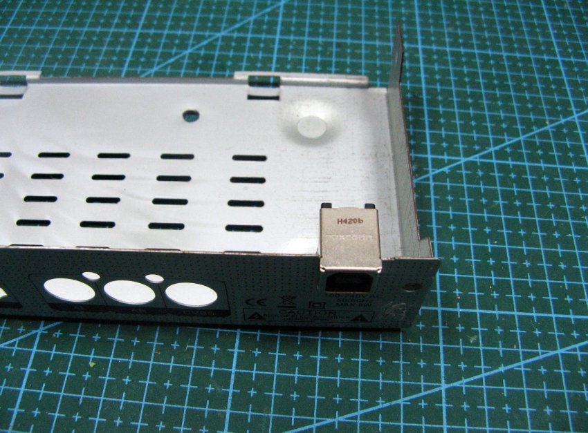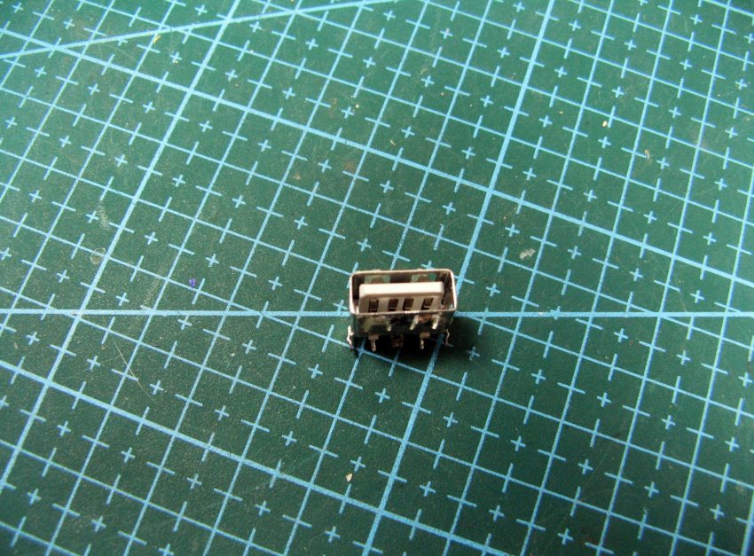 Для начала нужно установить USB на переднюю панель. Я решил применить двойной разъем, выпаял его со старой материнской платы. Надфилем расширил отверстие. Закрепил разъем на эпоксидный клей.