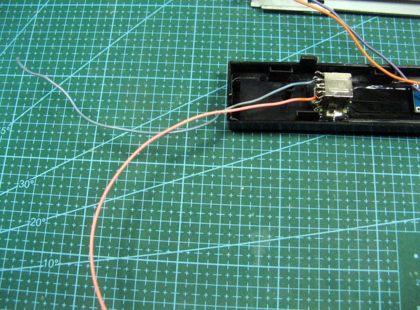 Припаял провода к USB и замкнул средние контакты. Это нужно для того, чтоб устройство заряжалось током более 0,5 ампер.