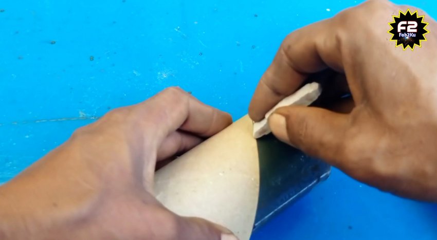 В качестве направляющей используется тот же кусочек бумаги или ткани. Те же манипуляции производятся и со вторым куском трубы. Получившийся в месте соединения линий угол скругляется.