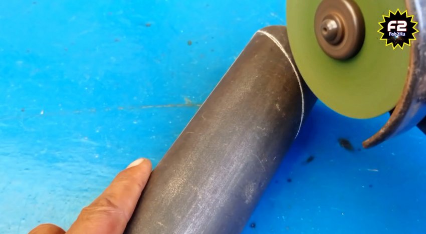 После окончания разметки можно приступать к резке. Она производится по намеченной линии с помощью УШМ. В рассматриваемом случае труба имеет малую толщину, поэтому дополнительная разделка кромок не требуется — она нужна при толщине стенок более 5мм, поэтому после отреза достаточно только зачистить обрабатываемую поверхность под сварку.