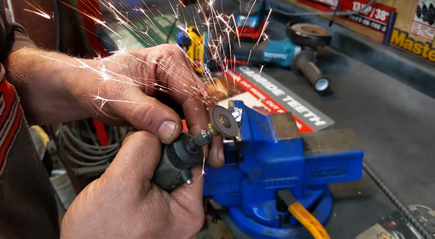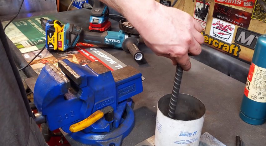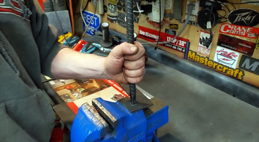 Изготовив заготовку квадратного типа на части арматурного прутка, необходимо ее будет «заточить» особым образом, используя совсем маленький круг болгарки и круглый напильник. Надо будет вертикально закрепить деталь в тисках, и постепенно создать полукруг между соседними вершинами квадрата. В центре торцевой части изделия должна при этом образоваться круглая впадина.