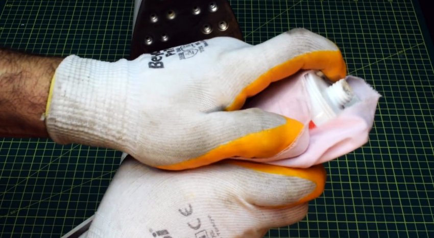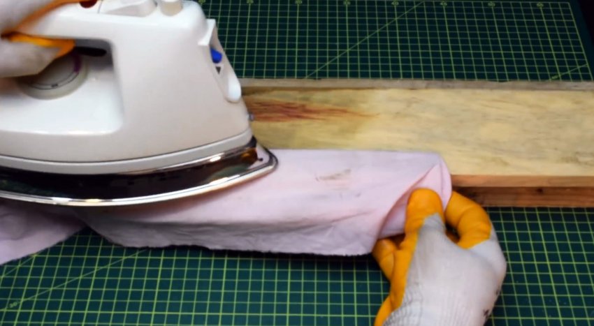 Края полученного желоба нужно выровнять, чтобы вкладывать внутрь тубу с герметиком. Для этого они разглаживаются обычным утюгом для белья через тряпочку, чтобы не испортить его подошву.