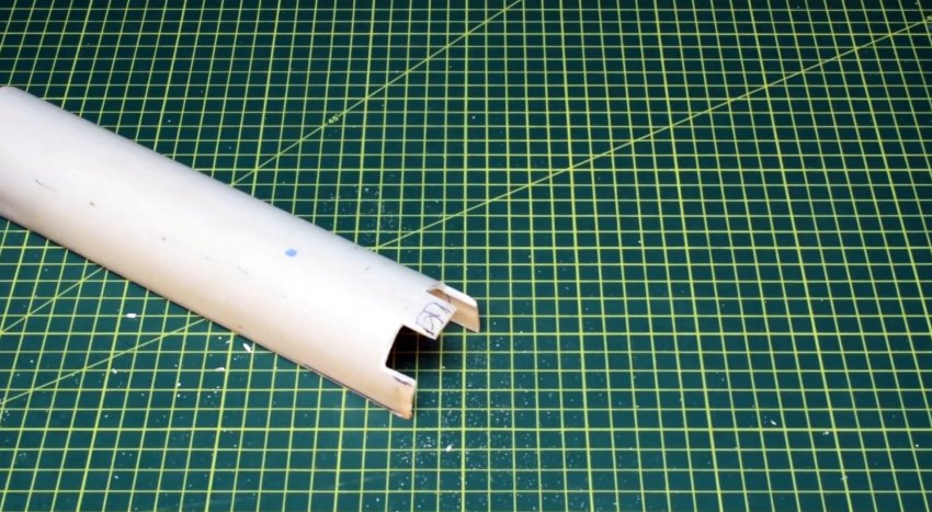 Затем в желобе выпиливается окно, чтобы выталкивать тубу с пистолета после использования.