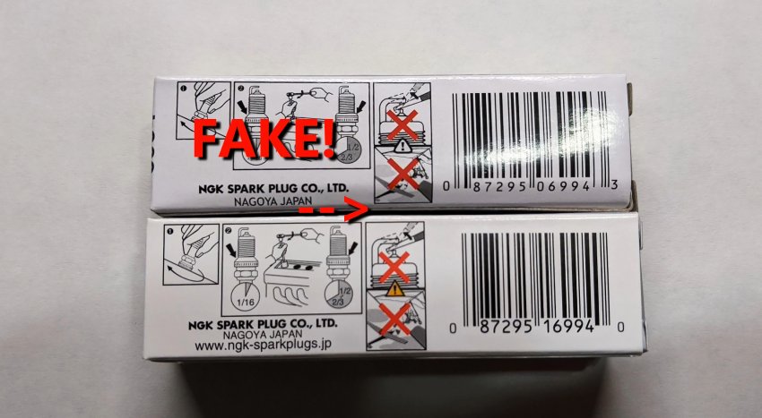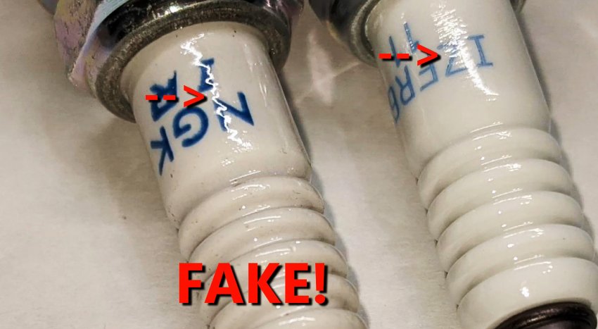 Иногда подделки изготавливаются очень качественно, тем не менее, они будут плохо работать, т. к. в них нет иридия, платины и меди. Поэтому ресурс подделок ограничен 12 тыс. км пробега. У оригинала он доходит до 180 тыс. км.