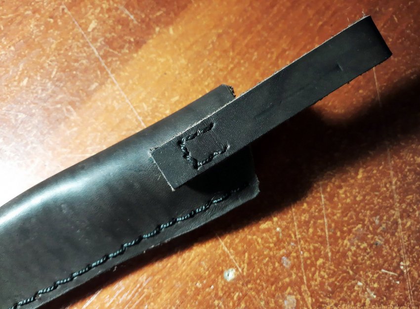 Также как вариант крепления ушка к ножнам – это просто сшить все вместе.