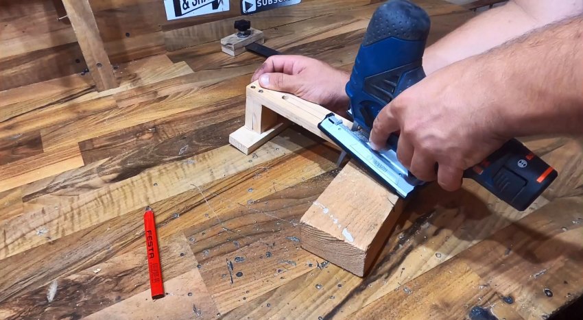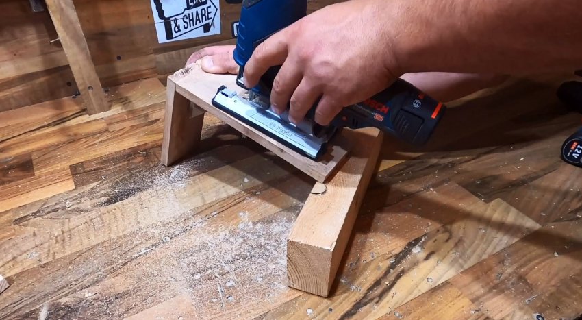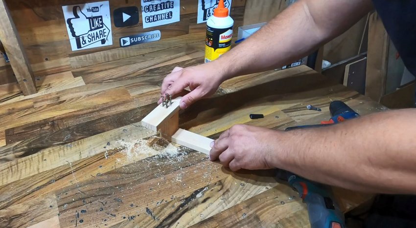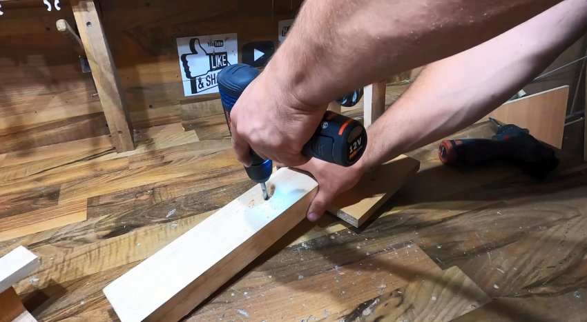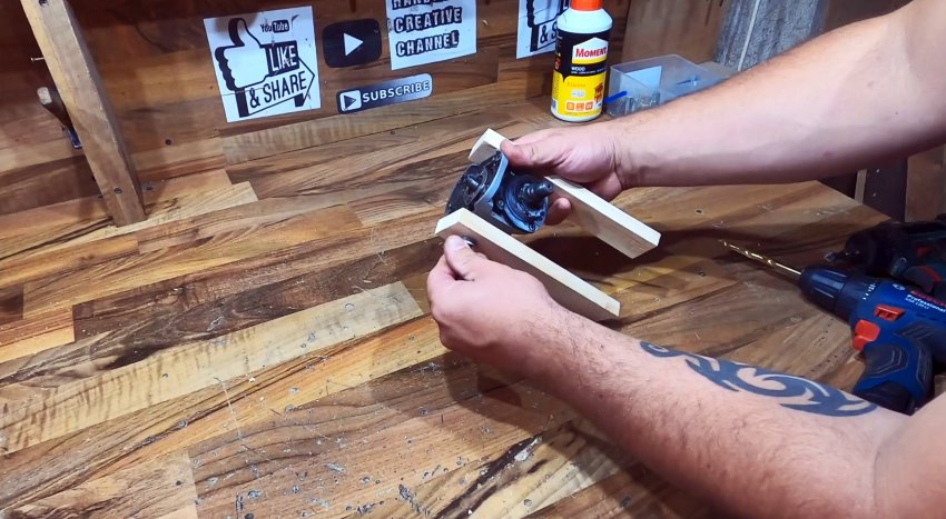 Из двух реек делаются стойка для крепления редуктора болгарки. Они просверливаются по краям, и прикручиваются к нему.