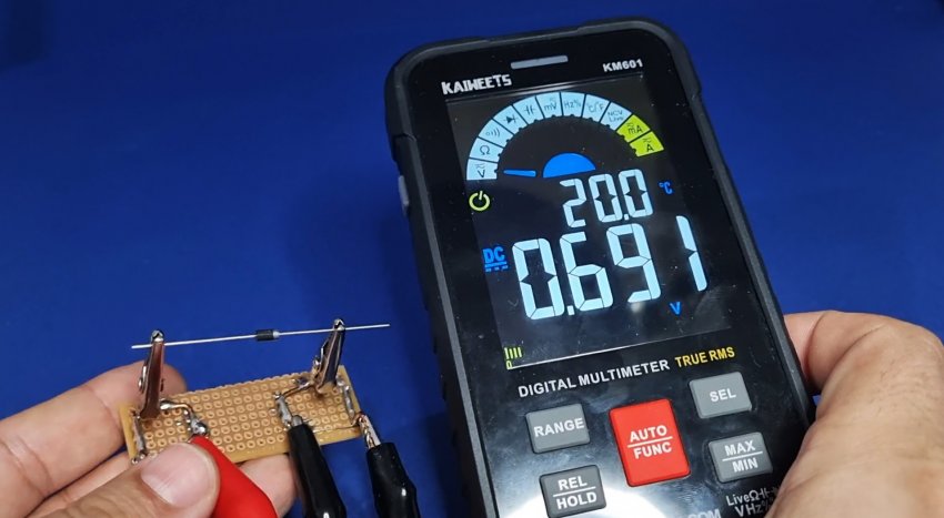 В итоге получаем значение - 0,69 В. По сути это уже готовый стабилитрон на низкое напряжение.