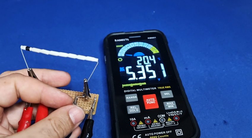 Напряжение стабилизации в итоге получилось 5,3 В. В большинстве случаев это отклонение будет некритичным. Ну а если нужно старого точно, то придется поподбирать детали с другими параметрами.