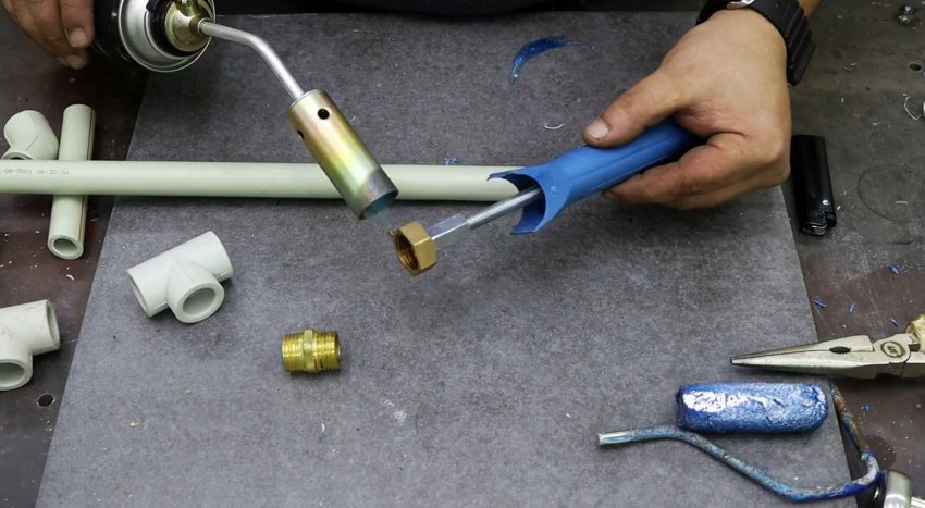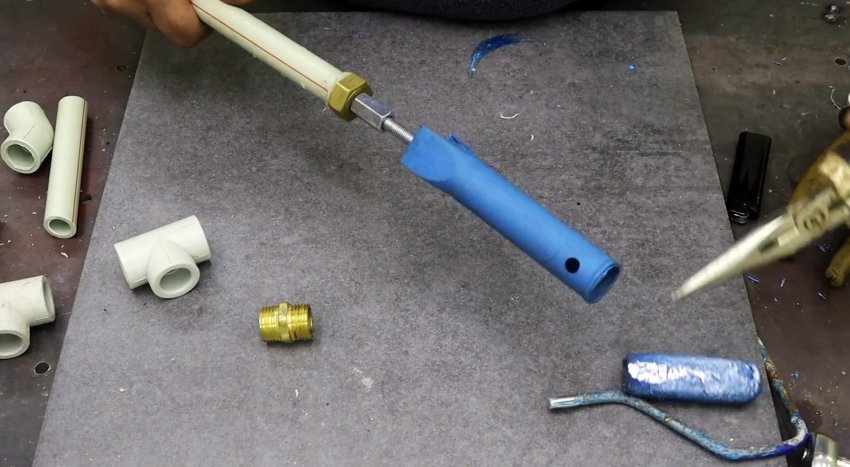 Полипропиленовые трубы подразумевают пайку, поэтому соединения их них неразборные, если конечно не применять металлические резьбовые фитинги. Последние достаточно дорогие, поэтому в некоторых случаях можно обойтись без них, а просто делая резьбу на самих трубах. Такое соединение подойдет для трубопроводов с низким давлением типа поливочных систем для огорода, или каркасов из ПП труб. Для формирования резьбы на полипропилене можно собрать простое приспособление. Предлагаем 2 варианта такого устройства – под электрический паяльник и горелку.