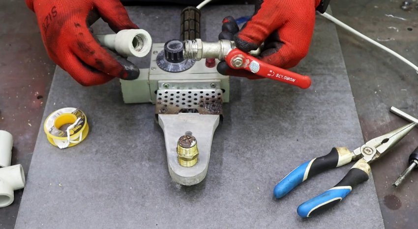 После разогрева на них вкручиваются ПП трубы, в результате чего в тех образовывается резьба. Нужно именно вкрутить, а потом выкрутить трубу.