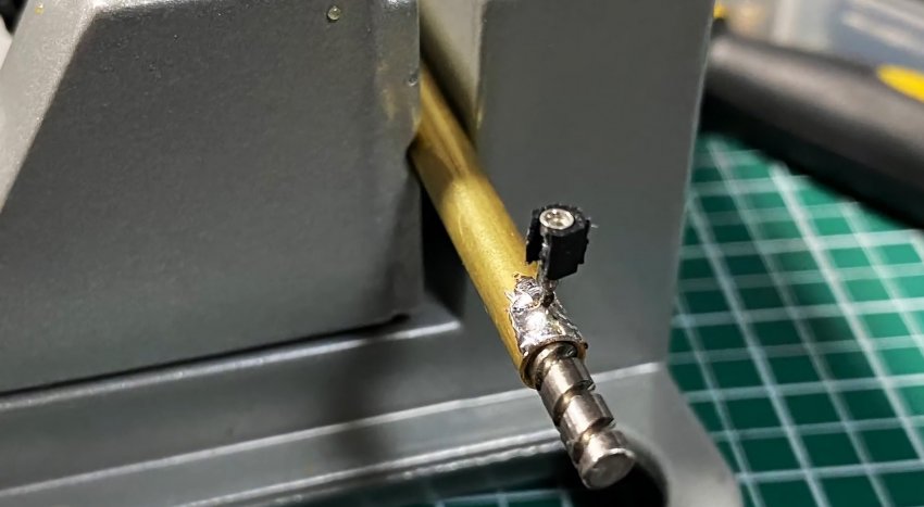 Он обязательно должен попасть в паз червяка. Затем соединение фиксируется пайкой.