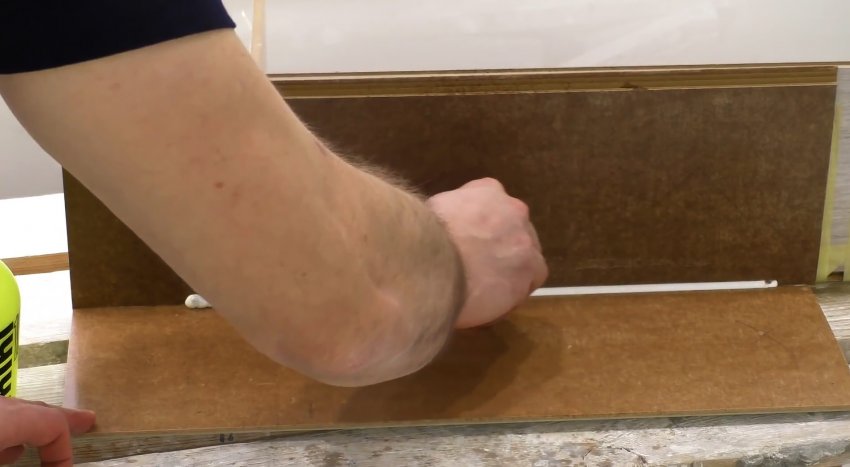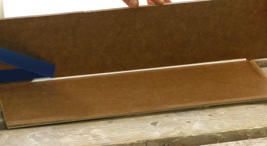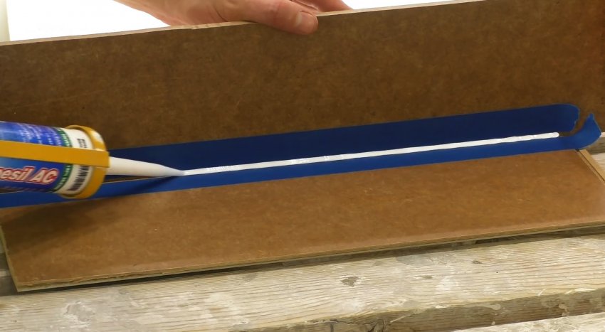 Силикон наноситься как можно аккуратней, затем его избыток убирается пальцем. За счет толщины скотча, кромки получатся не слишком тонкими, чтобы отслаиваться.