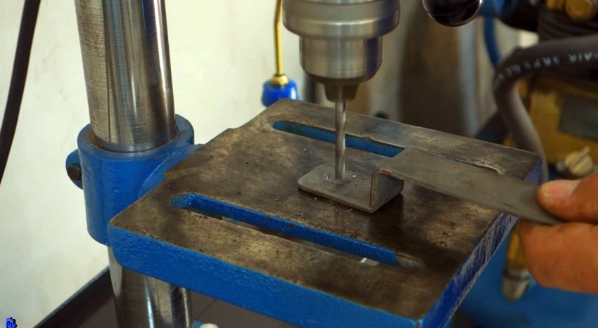 В центре короткой отогнутой части пластины сверлим отверстие. По центру длинной стороны проводим продольную линию и по всей длине на равном расстоянии друг от друга накерниваем точки и выполняем систему отверстий.