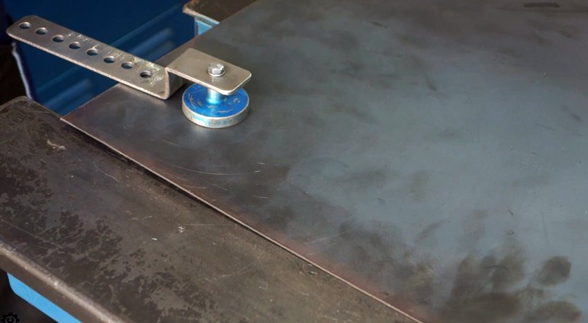 Измеряем штангенциркулем высоту магнитного диска и откладываем ее от места изгиба пластины в сторону короткой стороны.