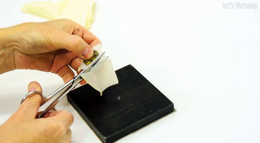 Из медицинской перчатки вырезают 3 клапана по размеру перфорированных крышек. В них пробивается по 2 отверстия под винты.
