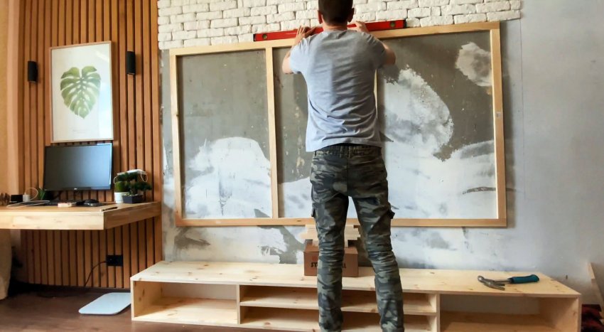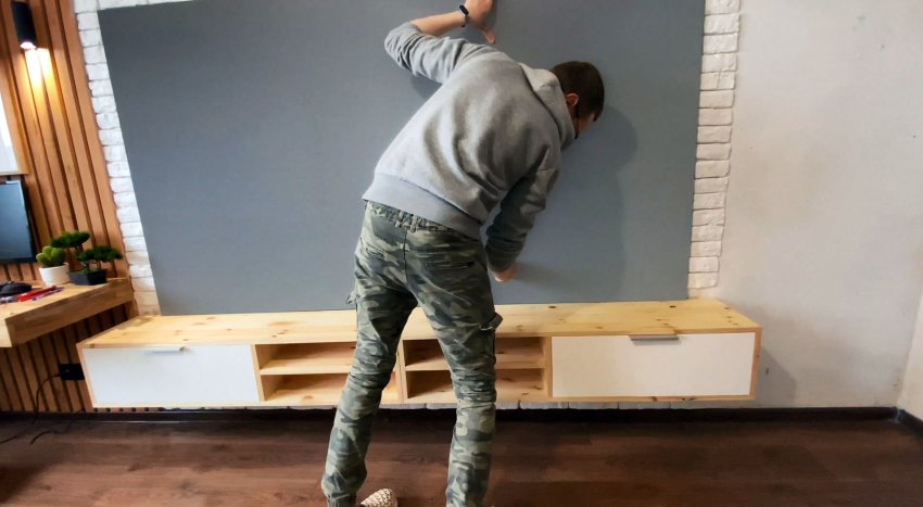 В крайнем случае, можно его прикрутить саморезами. Обыграть экран в интерьере можно декоративной гипсовой плиткой, приклеенной по периметру. Она позволит скрыть вид сбоку. Так экран станет частью интерьера, и не будет невыгодно выделяться.