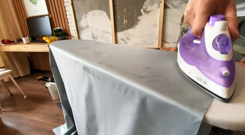 Она выглаживается от складок утюгом, так как выровнять их растягиванием не получится.