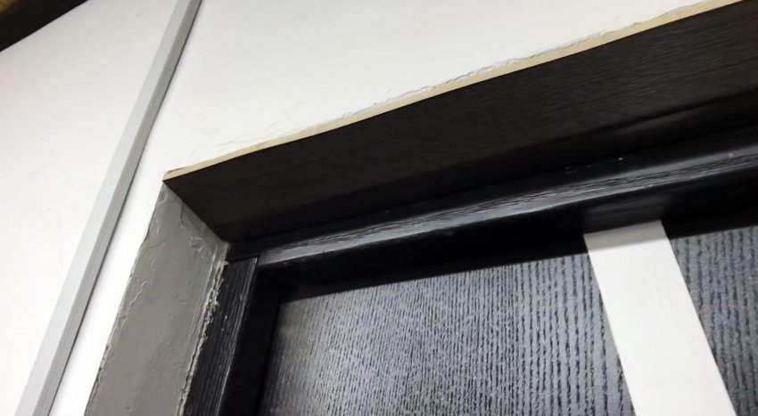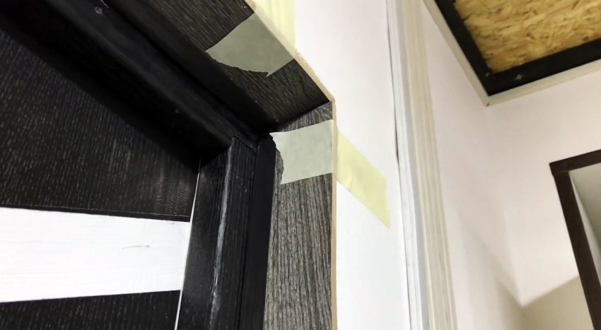 Тогда откосы из ламината с одной стороны упрутся в него, а с другой же их поддержит малярная лента, как и на окнах.