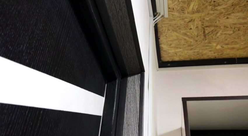 На двери так просто приклеить ламинат может не получиться из-за большого слоя пены. В таком случае к их коробке следует прикрутить или приклеить жидкими гвоздями пластиковый декоративный уголок.
