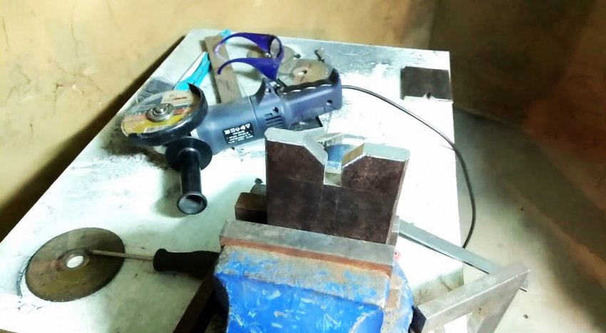 Отрезным кругом на глубину 20 мм вырезают пазы шириной 10 мм. После обрезки наружных углов выборки под 45 градусов получают пару готовых лезвий.