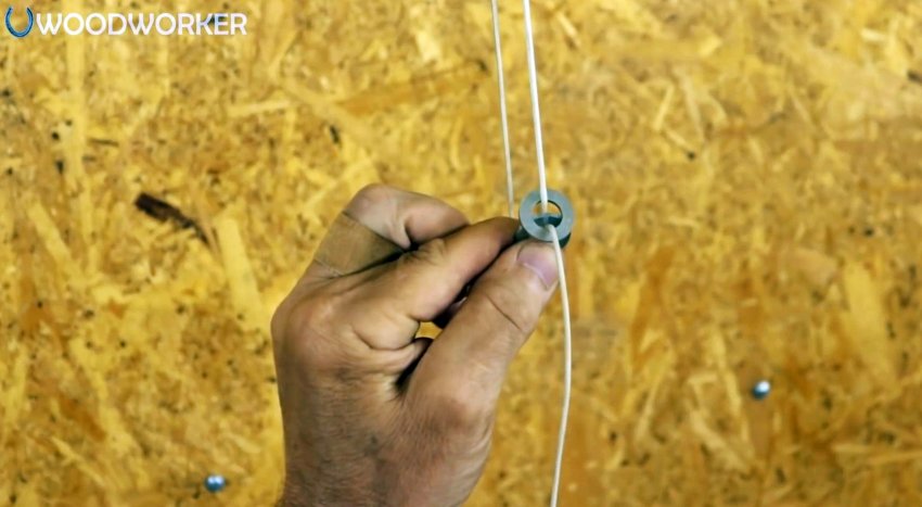Когда нужно что-то подвесить на шнур, и иметь возможность потом регулировать его длину, – воспользуйтесь шайбами. Шнур пропускается через них. Затем его конец выводится обратно в отверстие первой надетой шайбы.